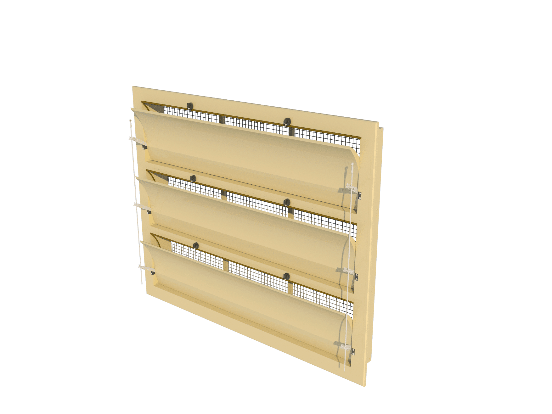 Tunnel inlet unit which consists of 1 x 6000-VFG-T + 1 x 6000-VFG-M + 1 x 6000-VFG-B. Wall model, flange in front, curved inner flaps. Controlled by means of two stainless steel side arms per inlet. Installation dimensions 1520*1220mm, effective depth 135mm. Air capacity 17400m³/h at 10Pa.Benefits and warranty
