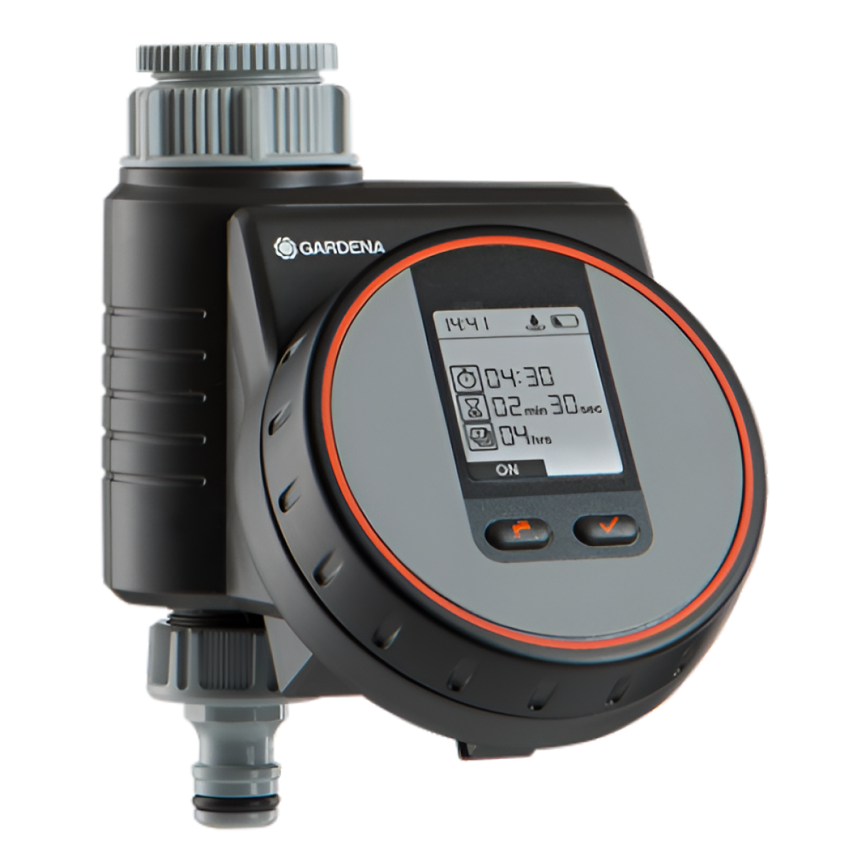 Gardena WaterControl M4 is a timer for setting a specific watering mode for gardens, vegetable gardens and lawns. Advantages of the Gardena WaterControl M4 timer. This timer can be used to set short watering intervals, so it can be used even for balcony plants. The watering duration can be selected from 1 second to 99 minutes. It is also possible to set watering intervals. Every 4 hours, 6 hours, 8 hours, 12 hours, 24 hours, 48 hours, 72 hours. Equipped with a display that makes it easy to control the selected mode. All settings are easy to set using a special rotary knob and buttons on the body, the knob can be locked to prevent accidental failure of the settings. Watering will always be accurate, since in case of low battery, watering does not start, and the system signals about the low battery. Watering can be started at any time regardless of the selected program - you just need to press the button on the timer. Gardena WaterControl M4 is a universal timer that allows you to water your plants without your presence, while saving water and energy.Benefits and warranty