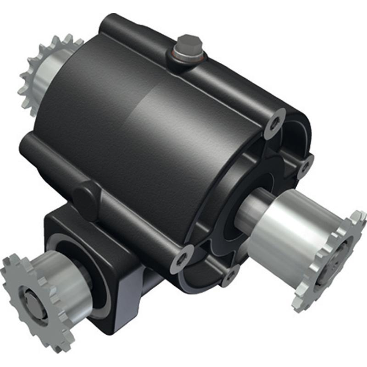 W240 worm gearboxes are compact, maintenance-free drive units for ventilation and lifting systems in greenhouses and livestock buildings. W240 worm gearboxes are mainly used in indirect drive systems, where several W240 worm gearboxes are driven by one gear motor. A mobile storage unit can also be supplied. W240 worm gearboxes have a self-braking worm gear (i=35). This low-noise transmission ensures that the output shaft is locked when the drive is stopped. W240 worm gearboxes are available in a standard version and in a version with a continuous worm shaft (W240D). W240 worm gearboxes are equipped with 16-tooth sprockets (1⁄2"x5⁄16") on the input and output shafts and can be mounted on mounting plates on either side of the worm gearbox.Benefits and warranty