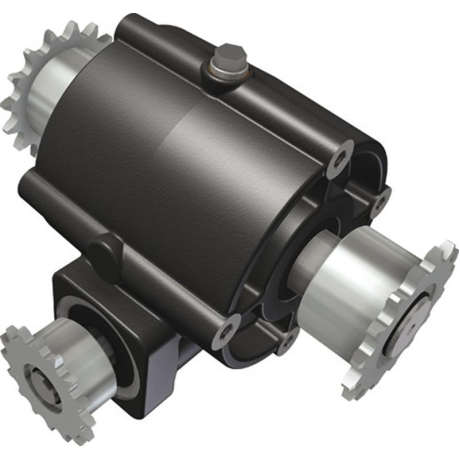 W600 worm gearboxes are compact, maintenance-free drive units for ventilation and lifting systems in greenhouses and livestock buildings. W600 worm gearboxes are mainly used in indirect drive systems, where several W600 worm gearboxes are driven by one gear motor. A mobile storage unit can also be supplied. The W600 worm gearboxes have a self-braking worm gear (i=35). This low-noise transmission ensures that the output shaft is locked when the drive is stopped. W600 worm gearboxes are available in a standard version and in a version with a continuous worm shaft (W600D). W600 worm gearboxes are equipped with 16-tooth sprockets (1⁄2"x5⁄16") on the input (and/or continuous) shaft and 16-tooth sprockets (5⁄8"x3⁄8") on the output shaft. W600 worm gearboxes can be mounted on mounting plates on either side of the worm gearbox.Benefits and warranty