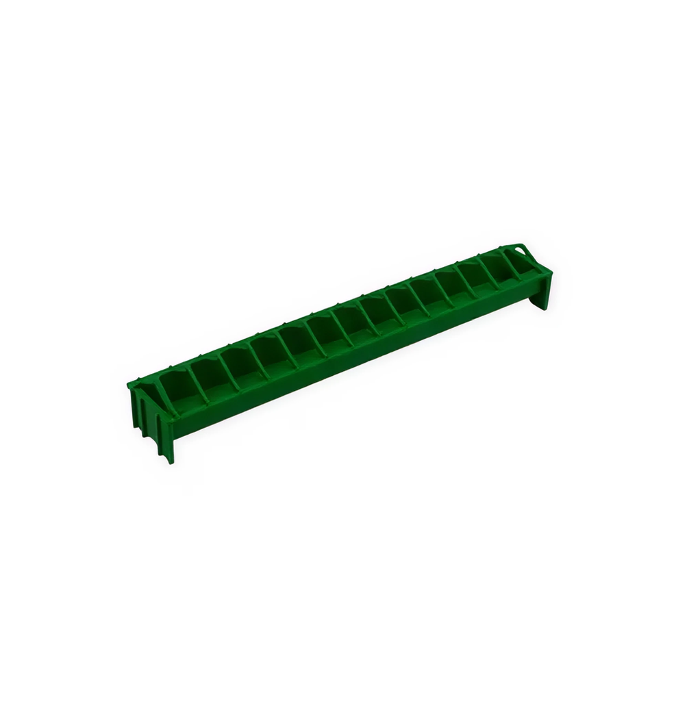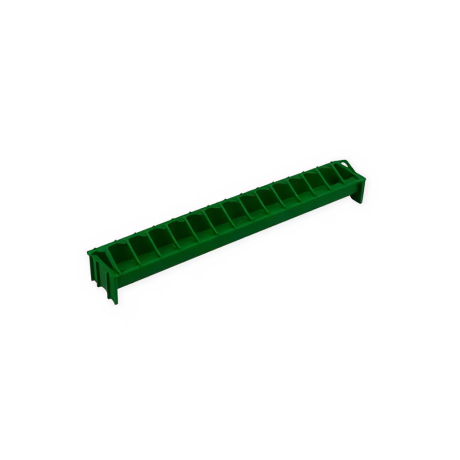 Годівниця-стрічка 50 см з решіткою для курчат. Курчата можуть їсти з обох боків, з 14 відсіків. Решітка проти відходів повністю знімна для легкого очищення та наповнення, а також легко встановлюється завдяки багнетному з'єднанню. Її форма запобігає накопиченню.Переваги та гарантія