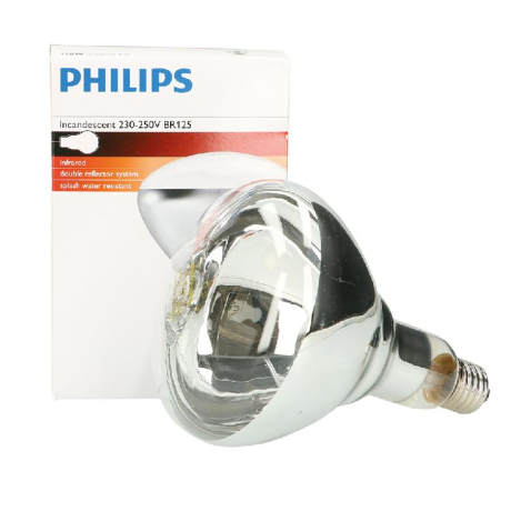 Лампа нагріву Philips — це інфрачервона лампа з твердого скла для сільського господарства, промисловості та побуту. У сільському господарстві лампа нагріву використовується для підтримки температури молодняку. Лампа нагріву Philips HG доступна потужністю 150 Вт та 250 Вт, а також у білому та червоному кольорах. Інфрачервона лампа нагріву забезпечує стільки ж інфрачервоного випромінювання та тепла, скільки й червона. Однак червона лампа нагріву виробляє приблизно на 75% менше світла, ніж біла.Переваги та гарантія