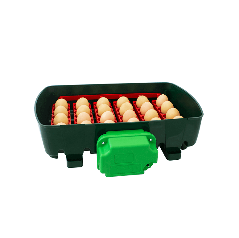 Цифровий інкубатор «ET 24» з поворотним столом OVOMATIC – це професійний інкубатор, призначений для інкубації різних типів яєць. Наприклад, можна інкубувати яйця курей, фазанів, цесарок, перепілок, куріпок, індичок, пальміпедних, павичів, котуніксів, голубів, лошат, екзотичних та хижих птахів. Місткість інкубатора становить 24 середніх/великих яйця або 96 малих яєць (наприклад, перепілок). Це простий інкубатор, який можна використовувати негайно. Тим не менш, він пропонує інноваційні технічні рішення та надзвичайну надійність. Крім того, інкубатор оснащений поворотним двигуном, який дозволяє плавно та автоматично регулювати нахил системи нахилу. Цифровий інкубатор ET 24 з поворотним столом OVOMATIC має такі характеристики: Оглядовий отвір Кришка оснащена двома оглядовими отворами, які дозволяють користувачеві стежити за всіма етапами інкубації ззовні; Поворотний лоток Яйця, що інкубуються, розміщуються в лотку з поворотною альвеолярною системою. Коливання лотка регулюється ключем для повороту яєць; Альвеолярна система. Спеціальна форма кожного тримача для яєць дозволяє вмістити як дрібні яйця (до 4 перепелиних яєць), так і великі яйця (до гусячих); Решітка для вилуплення. Решітка – це аксесуар, що входить до комплекту інкубатора, який дозволяє яйцям вилуплюватися на останньому етапі інкубації; Форсунки. Зовнішні вентиляційні отвори використовуються для наповнення лотків з водою без відкриття інкубатора, запобігаючи втраті тепла та вологи; Цифровий дисплей: дозволяє регулювати температуру від 30°C до 40°C (з температурним зондом з варіацією 0,1°C) простим натисканням кнопок + та -.Переваги та гарантія