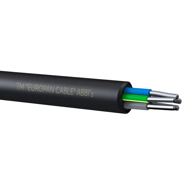 Кабель АВВГ-1 1х240 силовий алюмінієвий EUROPAN CABLE (4751) АВВГ – Силовий кабель з алюмінієвими жилами, полівінілхлоридною ізоляцією та оболонкою. Сфера застосування Призначений для передачі та розподілу електричної енергії у стаціонарних установках на номінальну змінну напругу 0,66; 1 кВ частоти 50 Гц. Застосовується при прокладанні в блоках, на спеціалізованих кабельних естакадах, може використовуватися в промислових приміщеннях, у розподільних та освітлювальних пристроях, а також у звичайних житлових приміщеннях у якості електропроводки, широко застосовується у дачному будівництві. Не рекомендується прокладати кабель у землі, оскільки він позбавлений броньованого захисту, тому прокладати його можна лише з механічним захистом. Конструкція Струмопровідні жили - алюмінієві, однодротові або багатодротові (клас 1, 2 ДСТУ EN 60228). Ізоляція та оболонка – полівінілхлоридний пластикат. Експлуатація Кабель призначений для стаціонарної експлуатації при температурі навколишнього середовища від -50°С до +50°С, відносній вологості повітря до 98% при температурі до 35°С, у тому числі для прокладання на відкритому повітрі. Кабель може бути прокладений без попереднього підігріву при температурі не нижче -15°С. Мінімальний радіус вигину при монтажі повинен бути не менше 10-кратного зовнішнього діаметра одножильного та 7,5-кратного зовнішнього діаметра багатожильного кабелю. Тривало допустима температура нагрівання жил кабелю під час експлуатації 70°С і максимально допустима температура при струмах короткого замикання 160°С. Допустиме нагрівання жил кабелю в аварійному режимі не більше 80°С.Переваги та гарантія