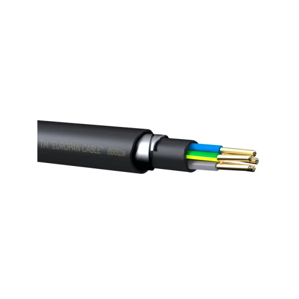 Кабель ВБбШвнг-0,66 5х1,5 силовий мідний EUROPAN CABLE. ВБбШвнг – Силовий кабель з мідними жилами, полівінілхлоридною ізоляцією та захисним покривом типу БбШв, що не підтримує горіння. Сфера застосування Призначений для передачі та розподілу електричної енергії у стаціонарних установках на номінальну змінну напругу 0,66; 1 кВ частоти 50 Гц. Застосовується для прокладання в землі (траншеях), приміщеннях, тунелях, каналах, шахтах (крім прокладки в блоках) і спорудах, що частково затоплюються, з різними корозійними умовами, а також на відкритому повітрі, якщо кабель не піддається значним розтягуючим зусиллям, але за наявності небезпеки механічних. пошкоджень в процесі експлуатації. Індекс «нг» означає, що цей кабель не підтримує розповсюдження горіння, що особливо важливо у місцях з високою ймовірністю займання та підвищеними вимогами до безпеки. Конструкція Струмопровідні жили - мідні, однодротові або багатодротові, круглі, секторні (клас 1, 2 ДСТУ EN 60228). Ізоляція з полівінілхлоридного пластикату. Броня зі сталевих оцинкованих стрічок. Зовнішня оболонка – випресований ПВХ захисний шланг, що не підтримує горіння. Експлуатація Кабель призначений для стаціонарної експлуатації при температурі навколишнього середовища від -50°С до +50°С, відносній вологості повітря до 98% при температурі до 35°С, у тому числі для прокладання на відкритому повітрі. Кабель може бути прокладений без попереднього підігріву при температурі не нижче -15°С. Мінімальний радіус вигину при монтажі повинен бути не менше ніж 7,5-кратного зовнішнього діаметра кабелю. Тривало допустима температура нагріву жил кабелю під час експлуатації 70°С і максимально допустима температура при струмах короткого замикання 160°С. Допустиме нагрівання жил кабелю в аварійному режимі не більше 80°С.Переваги та гарантія