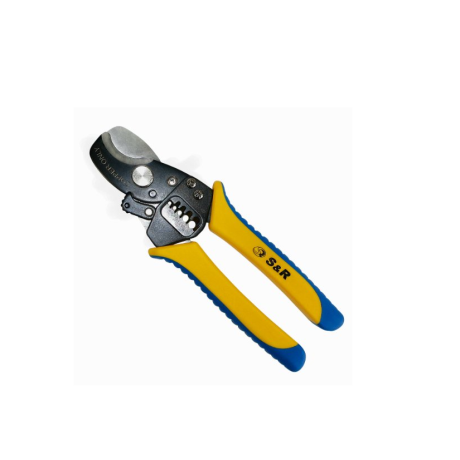 S & R 010-170 - інструмент для різання кабелю діаметром до 11 мм, а також для зняття ізоляції з кабелів 8-14AWG. Кабелерез S & R 010-170 використовується тільки для проводів з мідної або алюмінієвої житлової, для сталевого або залізного дроту даний інструмент не використовується. Зняття ізоляції призначене для проводів діаметром від 0,82- 8,35 мм 2. Леза кабелерез виготовлені з кованої сталі SK5 з прецизійної заточкою, які рівно і швидко розрізають провід або ізоляцію. Фіксатор лез, дозволяє безпечно зберігати інструмент і подовжує термін експлуатації. Двокомпонентні прогумовані рукоятки, дозволяють комфортно працювати тривалий час. Ребриста поверхня не дозволяє інструменту ковзати в руках і забезпечує надійне захоплення. Кабелерез S & R 010-170, завдяки своїй якості прослужить Вам довгі роки.Переваги та гарантія