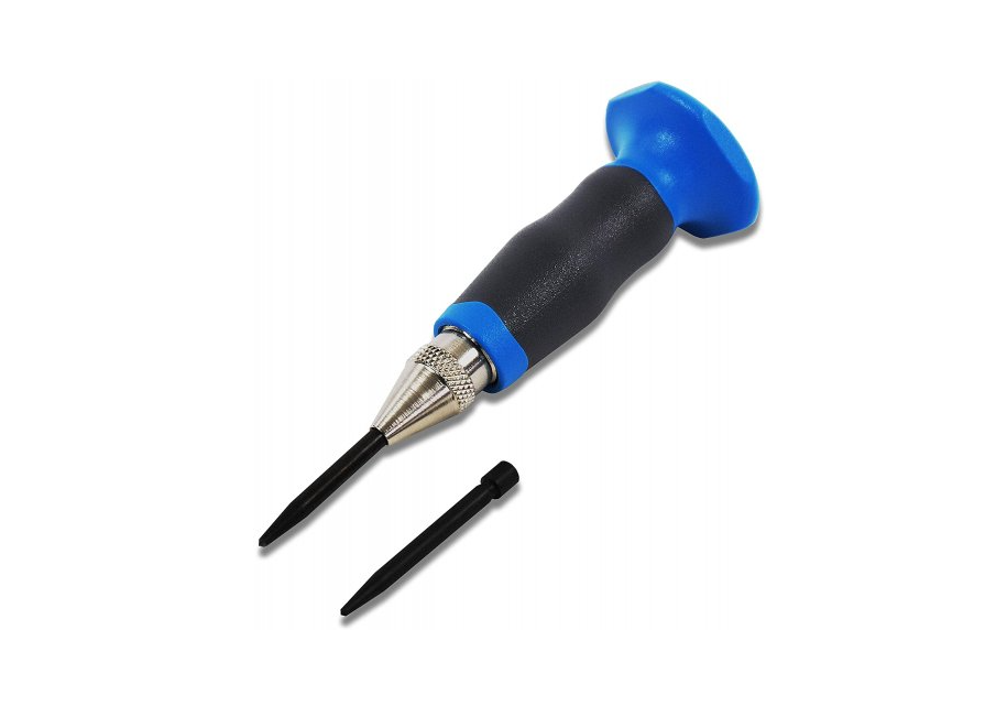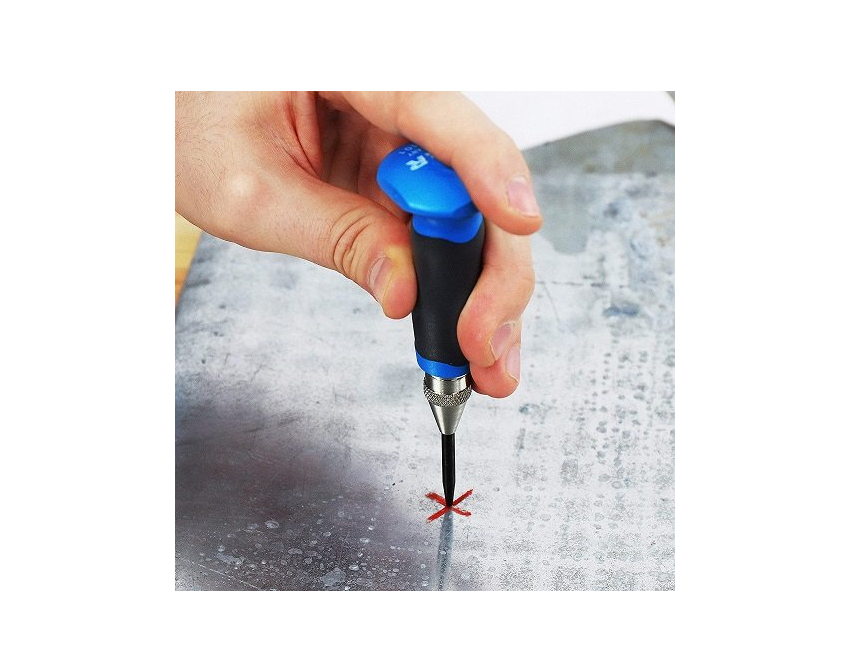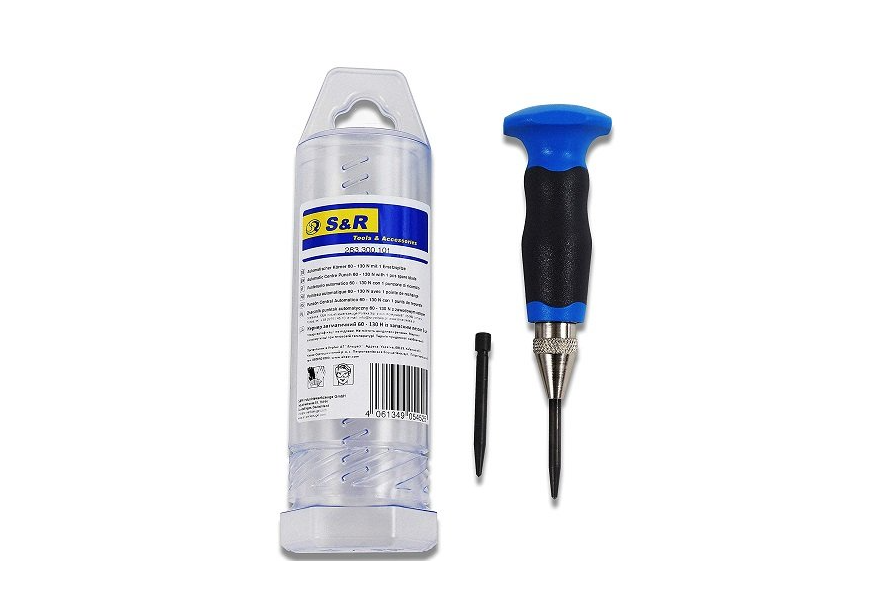 S & R 4,0 х 145мм - автоматичний керн для того різання центруючих отворів під свердло або різних відміток для точної роботи. Завдяки автоматичному удару немає необхідності використовувати додаткові інструменти. Для довгого терміну служби і ефективної роботи комплектується додатковим наконечником. Компактні розміри і можливість працювати однією рукою дозволяють виконувати роботу в важкодоступних місцях. Удар легко відбувається після натискання на центр. Є можливість регулювати силу удару від 60Н до 130Н для роботи з різними по щільності матеріалом. Регулювання відбувається за допомогою повороту ручки. Завдяки автоматичному Кернера ви можете робити позначки однакової глибини, а також прискорюється процес роботи. Зручна рукоятка керна захищає руки від удару. Кернер S & R 4,0 х 145мм дозволяє виконувати роботу швидко, серійно робити позначки і отвори.Переваги та гарантія
