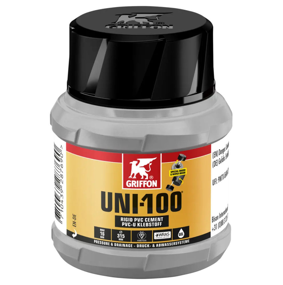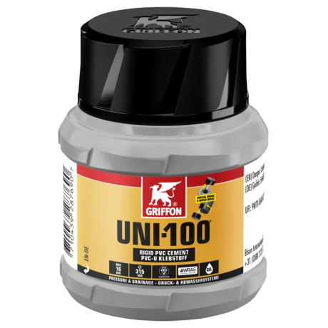 Клей Griffon UNI-100 — це високоякісний, тиксотропний клей, спеціально розроблений для міцного та надійного з'єднання труб і фітингів з твердого ПВХ (PVC-U). Об'єм 250 мл ідеально підходить для середніх обсягів монтажних робіт. Клей забезпечує швидке та герметичне з'єднання, що є критично важливим для систем подачі корму та напування.Переваги та гарантія