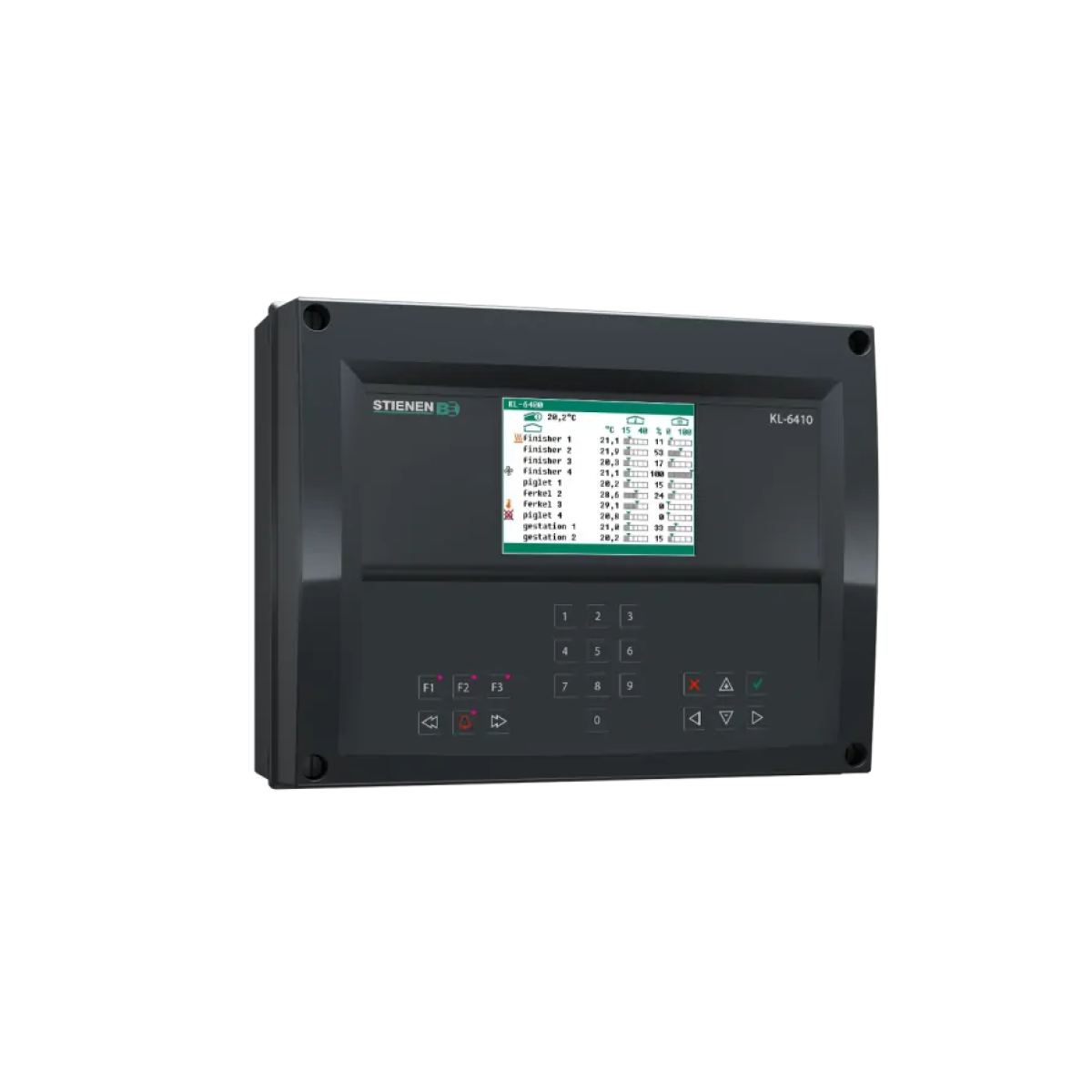 Цей зручний комп’ютер для управління мікрокліматом і керуванням розроблено, щоб стати серцем вашої ферми. KL-6400 контролює та управляє якістю життя ваших тварин, щоб досягти оптимальних результатів. Комп’ютер збирає всі дані з систем Stienen для зважування кормів, зважування силосу та теплообмінників і обробляє ці дані у зрозумілі таблиці та графіки. Графічне представлення таких параметрів, як температура, вода, корм, вага, продуктивність, відносна вологість (RH), вуглекислий газ (CO2) і аміак (NH3), надає вам всю важливу управлінську інформацію з першого погляду. KL-6400 легко керувати за допомогою функціональних клавіш. Оскільки невикористовувані функції не відображаються, система керування залишається легкою та прозорою. Серія KL-6400 розроблена в повсякденній сільськогосподарській практиці спільно з клієнтами для клієнтів.Переваги та гарантія