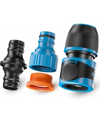 Gruntek - 1,2-5,8-3,4 "- набір з'єднувачів для підключення шлагов для поливу до крана водопостачання, до дощовиків і пістолетів для поливу. В набір входить 2 коннектора. Коннектора підходить для шлангів діаметром 1/2 ", 5/8", 3/4 ", а також один з конекторів з регулюванням потоку води для поліпшення якості поливу і економії води. Коннектори виготовлені з міцного пластику, завдяки чому мають довгий термін служби. Легко приєднуються до шлангу та крану завдяки замкового з'єднання - швидко і надійно.Переваги та гарантія