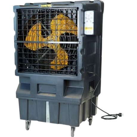 Кондиціонер MASTER BC 120 Спосіб роботи цих кондиціонерів, що використовує природний процес випаровування води, робить їх безпечними для здоров'я, і ??в той же час ефективно усуває всі забруднення, пил і неприємні запахи з навколишнього середовища. Вони можуть працювати на відкритому повітрі – в садах ресторанів, наметах тощо. Специфікація: Витрата повітря: 12 000 м3 / год Максимальна площа: 150 м2 Живлення: 230/50 В / Гц Споживана потужність: 450 Вт Витрата води: 8-10 л / год Ємність бака: 80 л Рівень шуму: 62 дБ (A) Вага (без / з водою): 45/50 кг Розміри пристрою: 925 х 580 х 1430 мм Опис моделі: Ефективний і довговічний кондиціонер для промислового використання Тиха робота навіть при інтенсивному потоці повітря Режим автоматичної зміни положення лопатки Великий резервуар для води дозволяє працювати довше Великі колеса з гальмами для зручності пересування Просто підключіть подачу води за допомогою шланга або наповніть резервуар для води, щоб забезпечити співробітникам комфортну роботу Стійкий до корозії пластиковий корпус Повітряний фільтр, що входить в комплект, полегшує обслуговування Пульт дистанційного керування полегшує роботу та налаштування швидкості вентилятораПереваги та гарантія