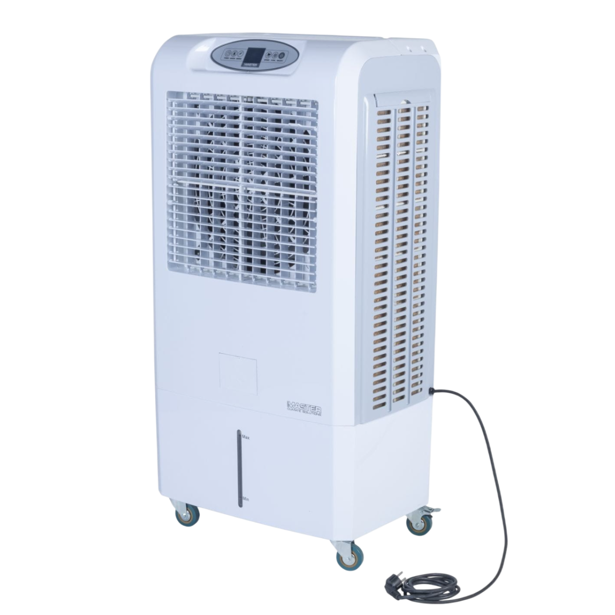 Кондиціонер MASTER CCX 4.0 Спосіб роботи цих кондиціонерів, який використовує природний процес випаровування води, робить їх безпечними для здоров'я, і ??в той же час ефективно усуває всі забруднення, пил і неприємні запахи з навколишнього середовища. Вони можуть працювати на відкритому повітрі – в садах ресторанів, наметах тощо. Специфікація: Витрата повітря: 4000 м3 / год Площа: 50 м2 Живлення: 230/50 В / Гц Споживана потужність: 280 Вт Витрата води: 3-7 л / год Ємність бака: 31 л Підключення до води: 1/2 '' дюйма Рівень шуму: 67 дБ (A) Вага (без / з водою): 23/54 кг Розміри пристрою: 430 х 610 х 1170 мм Опис моделі: Привабливий, компактний дизайн Низькі витрати на встановлення, експлуатацію та обслуговування Пульт дистанційного керування для легкої роботи Різні налаштування режимів роботи Ручки та колеса для зручності перенесення Різноманітність застосування завдяки вбудованому резервуару для води Довгий час безперервної роботи без необхідності доливання води Безшумний іонізатор Радіальний вентиляторПереваги та гарантія