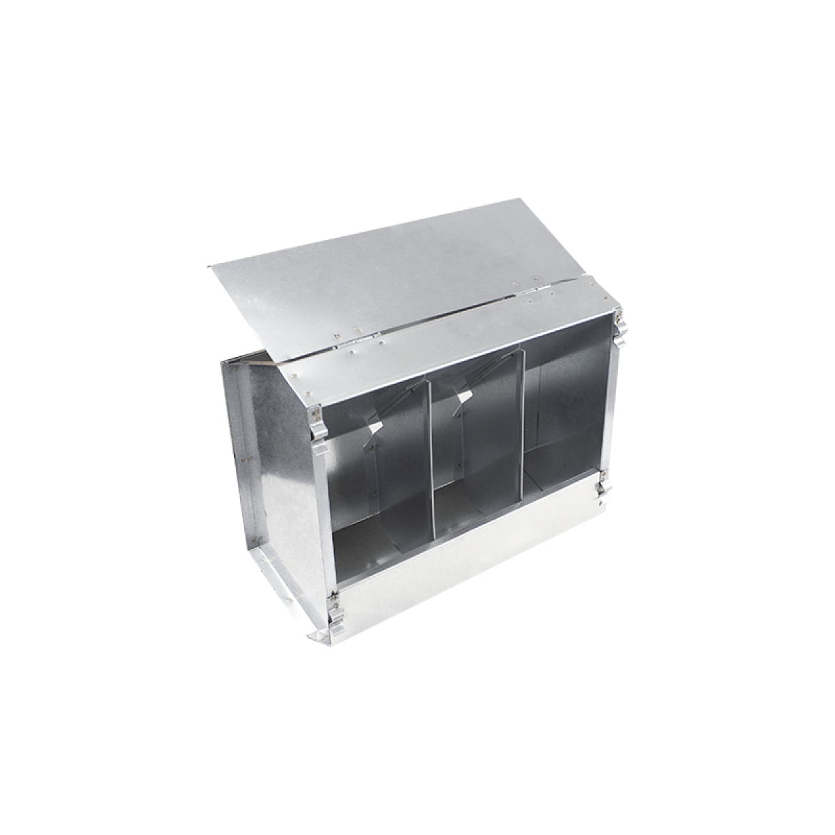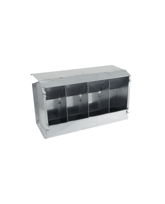 Годівниця-бункер з 3 відділеннями та кришкою для кроликів. Годівниця-бункер з кришкою для кроликів та інших подібних тварин, повністю виготовлена з оцинкованого листового металу. Має 3 відділення та може бути прикріплена до клітки або сітки огорожі. Перфороване дно.Переваги та гарантія