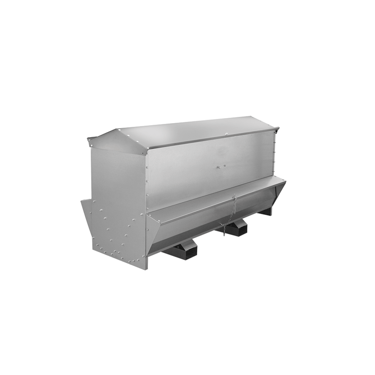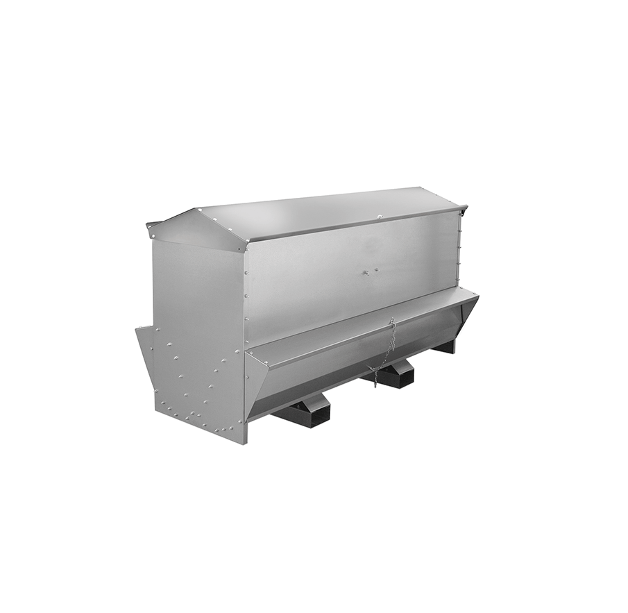 Годівниця. Оцинкована металева годівниця підходить для ферм з великою кількістю тварин, навіть на відкритому повітрі, оскільки може вмістити до 500 кг корму. Тварини мають доступ до корму з обох боків годівниці. Замикаються перегородки та верхня кришка захищають корм. Завдяки значним розмірам, вона оснащена спеціальними ніжками, що дозволяють піднімати її за допомогою вилкового навантажувача.Переваги та гарантія