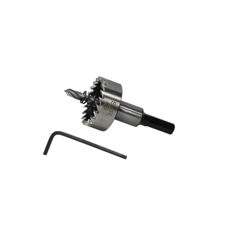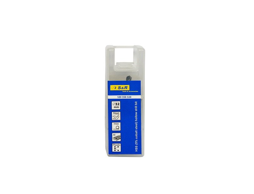Коронка по металу S & R 32 мм - витратний інструмент для свердління отворів в металі, нержавіючої сталі, кольорових металах і залозі за допомогою дрилі або свердлильних установок. Коронка виготовлена зі швидкорізальної HSS стали марки M35 до складу, якої входить кобальт - 5%. Завдяки міцній стали коронка має довгий термін служби, а також дозволяє просвердлювати отвори в нержавіючої та нелегованої сталі до 2 мм в глибину, а в металі до 4 мм. Коронка по металу S & R 32 мм складається з кільцевої коронки, хвостовика і центрувальні свердла з пружиною, завдяки якому коронкою можна виконати точні й рівні отвори в металі. У комплекті також йде шестигранний L-подібний ключ для легкої збірки і установки коронки. Коронка по металу S & R 32 мм - міцний довговічний інструмент для дрилі і свердлильних верстатів, яке виконає швидке свердління в твердих і м'яких видах металу з однаковою точністю і рівністю.Переваги та гарантія