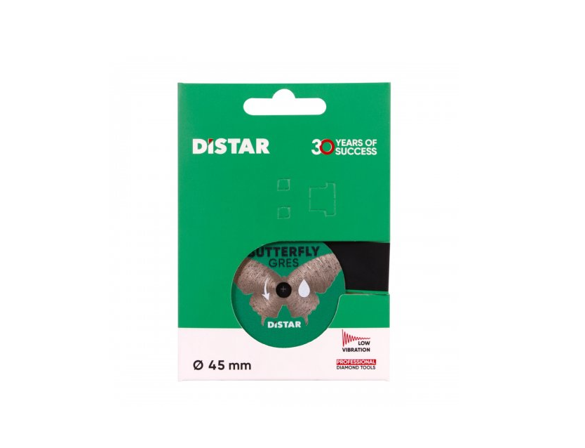 Круг алмазний Distar Butterfly керамограніт 45x5.8x0.6 мм - професійний інструмент для точного і чистого різання кераміки та керамограніту. Завдяки компактному розміру за допомогою цього інструменту зручно вирізати люки в плитці, невеликі отвори, виконувати елементи декору тощо. Особливості алмазного диска Дістар Butterfly: Діаметр - 45 мм, товщина - 0,6 мм, діаметр посадкового отвору - 5,6 мм. Виготовлений з алмазної крихти, завдяки чому під час різання забезпечує ідеально чисті кромки, а товщина пропилу - мінімальна. Призначений для використання із застосуванням охолоджувальної рідини (води). Великий ресурс роботи і стабільна продуктивність. Країна-виробник: Україна.Переваги та гарантія