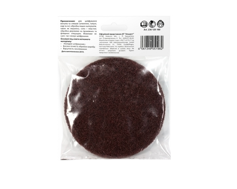 Характеристики Круг шліфувальний Meister 125х6мм з.100 з нетканого матеріалу на липучцi велкро S&R (236125100)