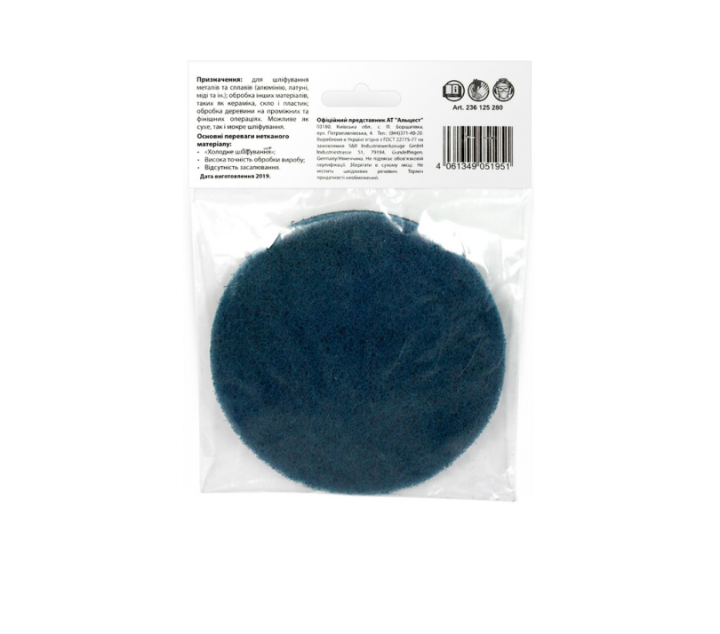 Характеристики Круг шліфувальний Meister 125х6мм з.280 з нетканого матеріалу на липучцi велкро S&R (236125280)