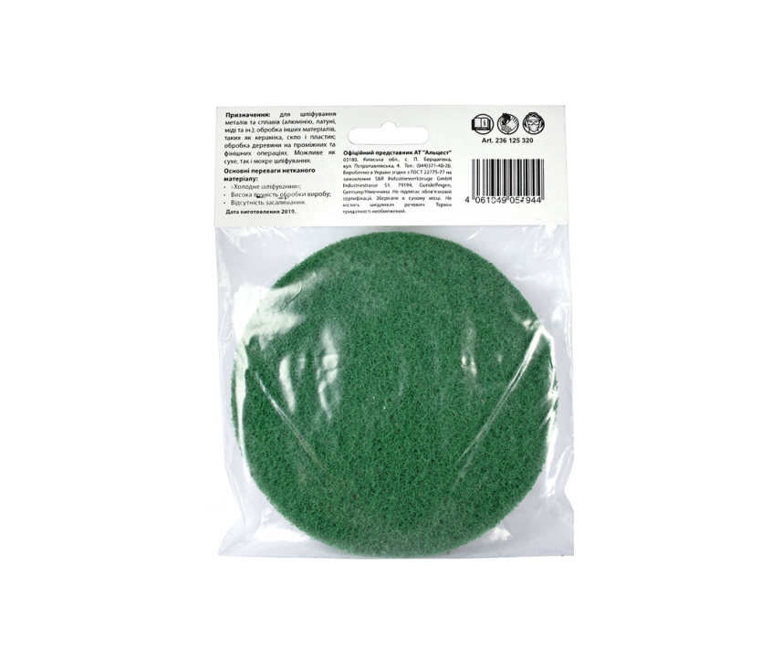 Характеристики Круг шліфувальний Meister 125х6мм з.320 з нетканого матеріалу на липучцi велкро S&R (236125320)
