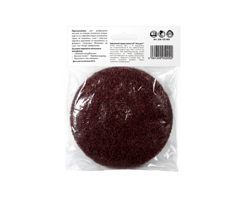 Характеристики Круг шліфувальний Meister 125х6мм з.60 з нетканого матеріалу на липучцi велкро S&R (236125060)