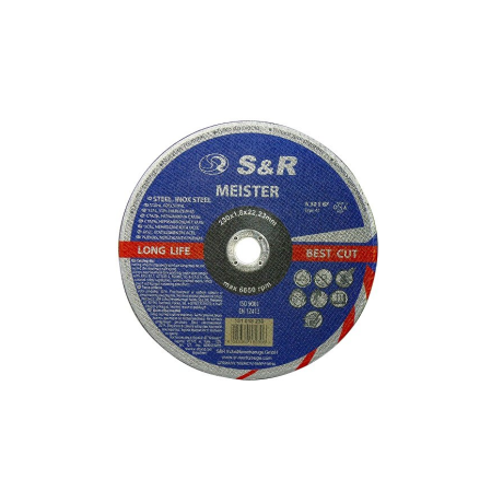 S & R Meister A 30 S BF - абразивний круг з подвійним армуванням, призначений для різання конструкційної сталі: легованої, нелегованої, високолегованої; для різання листового і нержавіючої сталі; для тонкостінних металевих профілів, а також можна застосовувати для роботи з чавуном, міддю, алюмінієм і його сплавами. Відрізний круг S & R Meister A 30 S BF виготовлений з високоякісного електрокорунду з бакелітовій зв'язкою. Абразивні диски S & R Meister відрізняються високою зносостійкістю, високим ресурсом і широким спектром застосування, що в свою чергу економить час і витрати на зміну кіл для застосування з різними матеріалами. Форма кола - Т41.Переваги та гарантія