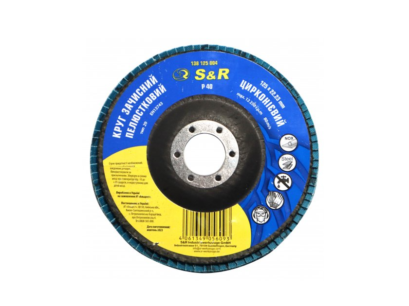 Запитання Круг зачисний пелюстковий Цирконієвий 125x22.2 з.40 сталь/нержавійка S&R (138125004)