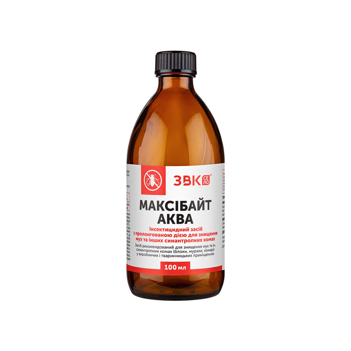 Засіб рекомендований для знищення мух та ін. синантропних комах (блохи, мурашки, комарі) у виробничих і тваринницьких приміщеннях. Інсектицидний засіб з пролонгованою дією для знищення мух та інших синантропних комах Засіб рекомендований для знищення мух та ін. синантропних комах (блохи, мурашки, комарі) у виробничих і тваринницьких приміщеннях. Засіб застосовують у вигляді водних розчинів у концентрації: В присутності тварин та птиці 1 % – 10 мл засобу на 990 мл води; В пустому приміщенні 2,5 % – 25 мл засобу на 975 мл води; В присутності тварин: Флакон 25 мл – на 2,5 л води, флакон 100 мл на 8-10 л. води. В пустому приміщенні: Флакон 25 мл – 975 мл води, флакон 100 мл на 3л 900 мл води. Для боротьби з комахами обробляють 1 % – 2,5% робочим розчином «Максібайт Аква» місця посадки комах (скло та рами вікон, дверні коробки тощо) у добре провітрюваних приміщеннях. Поверхні зрошують із відстані 20 – 40 см. Норма витрати робочого розчину Максібайт Аква складає 50 мл/м² у залежності від чисельності мух і типу поверхні, що підлягає обробці. При великій чисельності мух норму витрат робочого розчину можна збільшити до 100 мл/м². Поверхні обробляють раз на 5-7 днів, при потребі обробити повторно. Перед застосуванням флакон потрібно обов’язково збовтати до однорідної консистенції. Робочий розчин засобу готують шляхом змішування концентрату з водою кімнатної температури ( +18°C – + 25 °C). Після чого робочий розчин також збовтують. Приготування розчину відбувається безпосередньо перед його застосуванням, постійно і рівномірно розмішуючи. Суцільна обробка приміщень заборонена, обробляють лише поверхні, які контактують з мухами та іншими комахами. До роботи допускаються особи не молодше 18 років, які не страждають захворюваннями крові, печінки, органів дихання, пройшли спеціальну підготовку та інструктаж. Не допускаються до роботи вагітні та жінки, які годують груддю, а також особи з хронічними захворюваннями та підвищеною чутливістю до хімічних сполук. Особи, які працюють із засобом, повинні бути забезпечені комплектом засобів індивідуального захисту. При виконанні всіх робіт із засобом «Максібайт Аква» необхідно суворо дотримуватися заходів безпеки та правил особистої гігієни, не курити, не пити, не вживати їжу. Особливо обережно слід працювати з концентрованим засобом.Переваги та гарантія