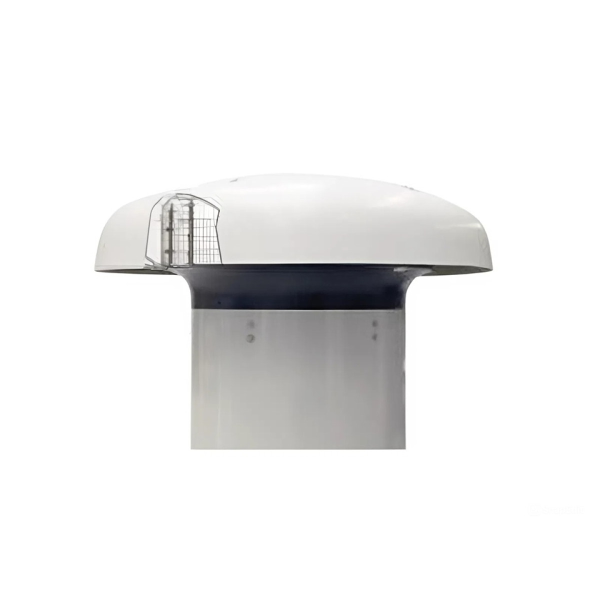 Дощові ковпаки із захисною сіткою від птахів. Додатковий захист від проникнення дощової води завдяки великому дощовому ковпаку з низьким контуром. Складається з: дощового ковпака (GRP), впускного патрубка (PUR), захисної сітки від птахів, кріпильних матеріалів із нержавіючої сталі (з 6 кронштейнами 650-920 мм).Переваги та гарантія
