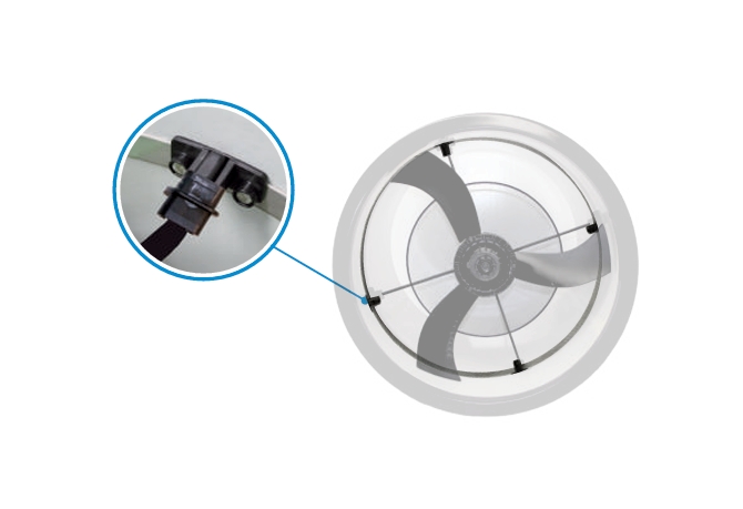 Кріплення та кріплення виготовлені з високоякісного пластику. Тип вентилятора не потрібно вказувати: кожне кріпильне кільце можна модифікувати окремо на місці для три- або чотириплечих вентиляторів. Заміна та встановлення вентиляторів простим відкриттям кріплення – для обслуговування та ремонту. Включаючи гумові підшипники для запобігання передачі шуму.Переваги та гарантія