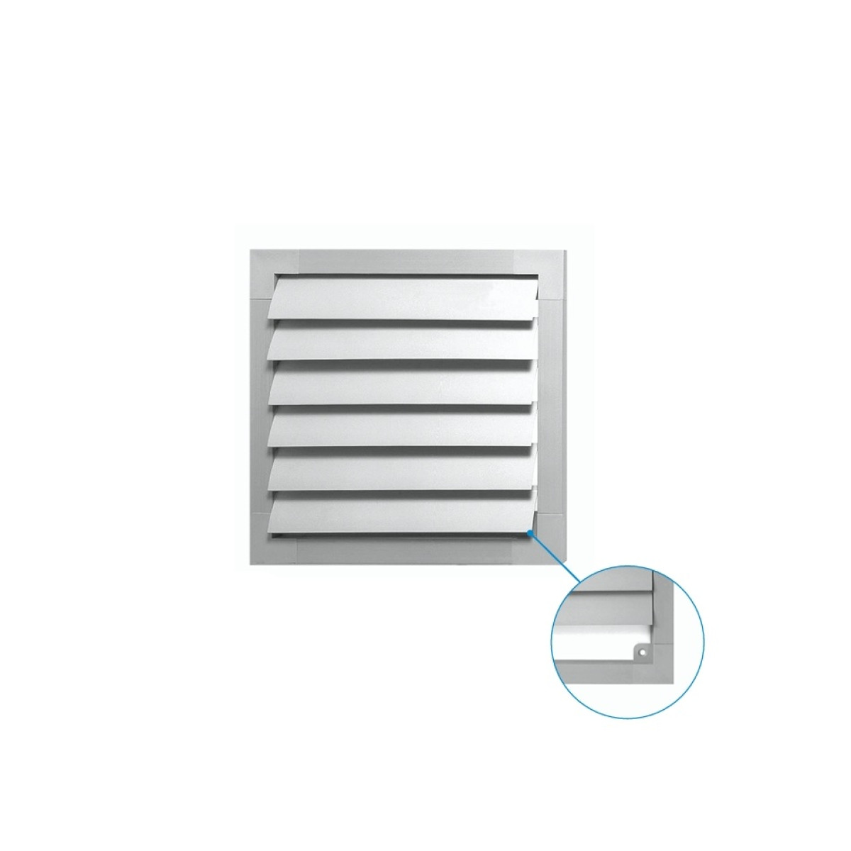 Заслінки вентилятора встановлюються на стороні надлишкового тиску вентилятора і тим самим надійно запобігають небажаним повітряним потокам. Заслінки виготовляються з стійкого до атмосферних впливів і УФ-випромінювання жорсткого ПВХ, тому мають тривалий термін експлуатації. Рама закрита і стійка до кручення.Переваги та гарантія