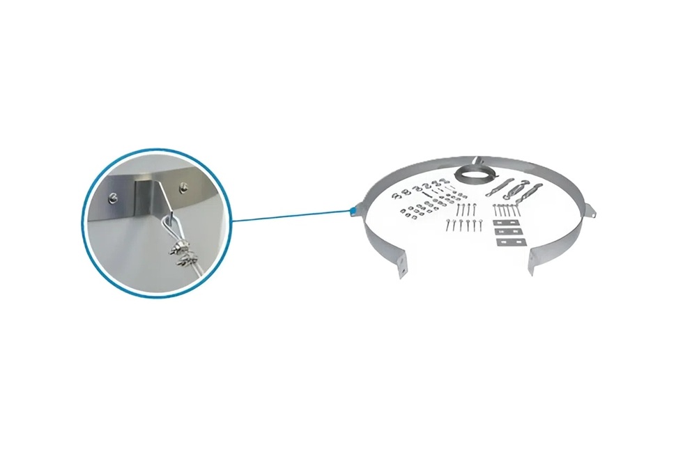 Штормове кріплення у зазначеному виконанні конструктивно розраховане на вітрову зону 2 та висоту повітропроводу 4 м. Для додаткової стабілізації склеєних з'єднань необхідне використання хомутів для повітропроводів.Переваги та гарантія