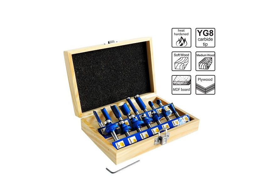 Запитання Набір фрез для деревини 15шт. хв.8 мм S&R (216900015)