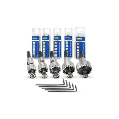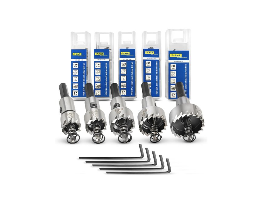 Запитання Набір коронок по металу Meister HSS M35 Co5% (в зборi) 5 шт.: 16,18.5,20,25,30 мм S&R (109350005)