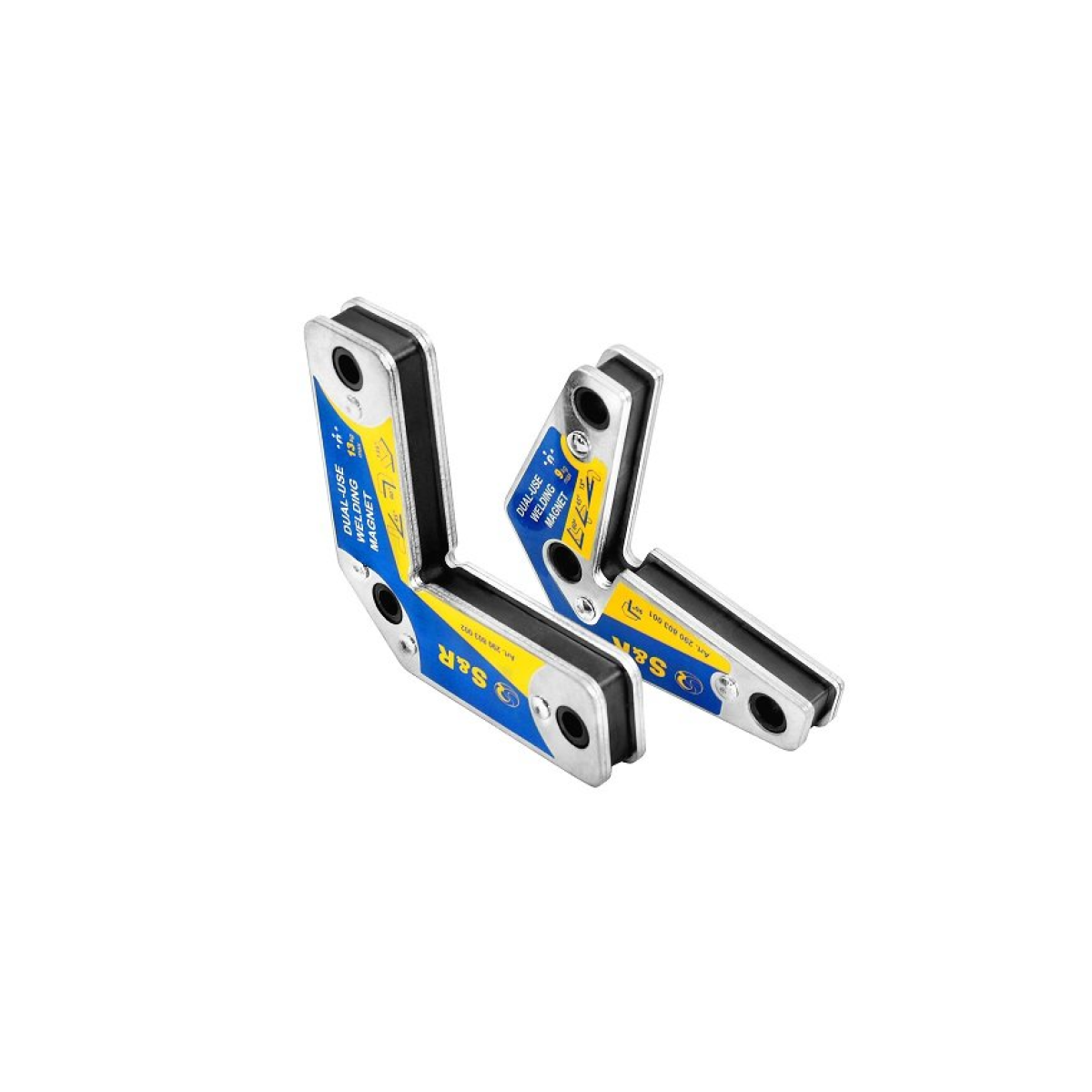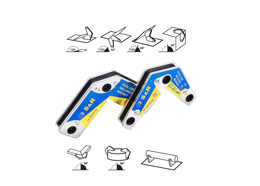 S & R 290803000 - магніти для виконання зварювальних робіт по металу. У комплекті йде 2 шт. магнітів які утримують 9 кг і 13 кг. Завдяки набору магнітних власників конструкцію для зварювання легко зафіксувати з різних боків в потрібному положенні. Зварювальний магніт з можливістю утримування ваги до 9 кг має кути 15 °, 45 °, 60 °, 90 °. Зварювальний магніт з можливістю утримування ваги до 13 кг має вугілля 45 °, 90 °, 135 °. Завдяки різним варіантам кутів можна створити зварювальний шов під потрібним кутом. Набір магнітних утримувачів S & R 290803000 дозволяє не тільки рівно зварювати між собою металеві елементи, але і звільняє руки для коригування положень, для утримання інструменту і ін. Такі магнітні тримачі дозволяють з'єднувати 3 деталі під різними кутами.Переваги та гарантія