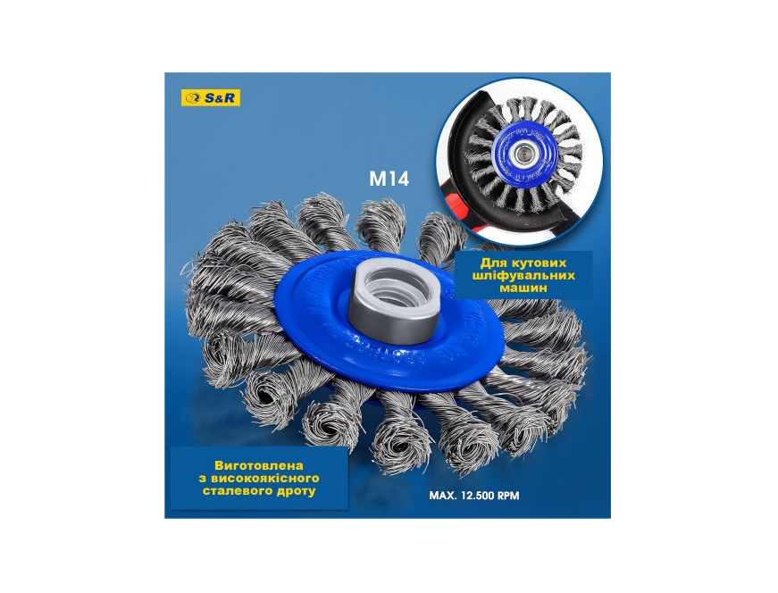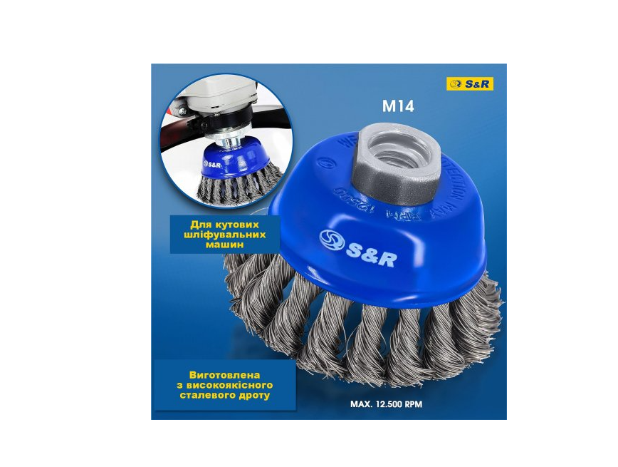 Купують разом з Набір щіток 3 шт: ручна 255мм; чашкова 75мм x M14; дискова 100мм x M14; плетений дріт S&R (135003003)