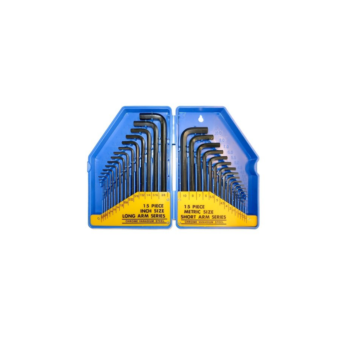 Набір шестигранних ключів S & R для збирального механічного виробництва, станцій технічного обслуговування. Матеріал - хром-ванадієва сталь. Обробка поверхні - матування. Конструктивні особливості - хром-нікелеве покриття. Робочий діаметр - 0.7; 0.9; 1.27; 1.5; 2; 2.5; 3; 4; 4.5; 5; 5.5; 6; 7; 8; 10; 0.028; 0.036; 0.05 мм і 1/16; 5/64; 3/32; 7/64; 1/8; 9/64; 5/32; 3/16; 7/32; 1/4; 5/16; 3/8 '.Переваги та гарантія