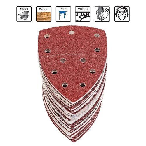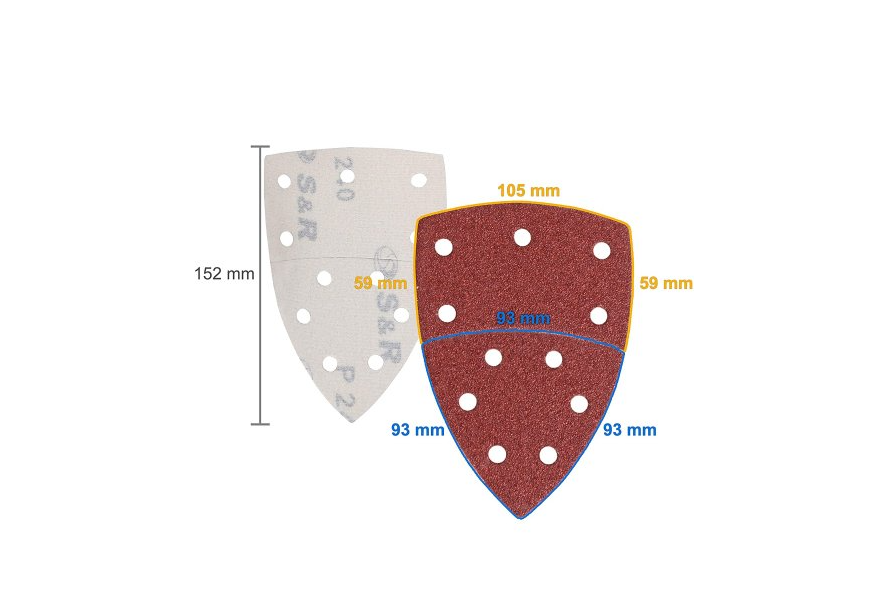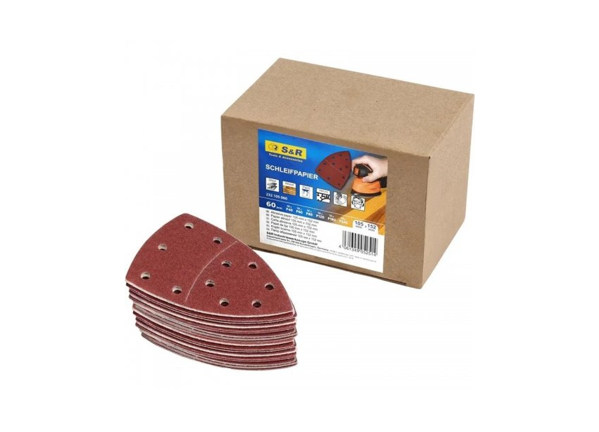 Набір шліфпаперу S&R 105мм х 152мм 60 шт - комплект шліфувальних листів для дельташліфмашин (з трикутною підошвою). Особливості набору шліфувального паперу СР для дельташліфмашин 60 шт: У комплекті представлені шліфлисти такої зернистості (по 10 аркушів кожної): Р40/Р60/Р80/Р120/Р180/Р240. Таким чином набір підходить для широкого спектра шліфувальних робіт. Зерно виготовлене з оксиду кремнію. На кожному аркуші трикутної форми є 11 отворів для відведення стружки і пилу. Габарити листа - 105х152 мм. Підходить для шліфування металів, дерева, пластику, гіпсових поверхонь, зняття фарби/лаку тощо. У наборі - 60 аркушів. Країна бренду: Німеччина. Країна-виробник: Китай.Переваги та гарантія