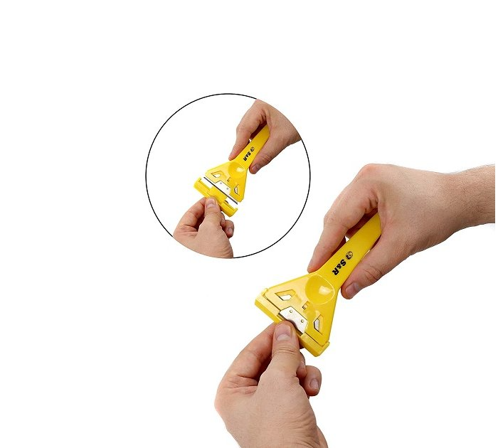 Набір скребків S & R 3 шт. для очищення скляних, керамічних, гладких поверхонь. Ефективно видаляє бруд з керамічної плитки або духовки, можна знімати шпалери. У набір входить: 2 скребка 17,8 см і 1 скребок 14,5 см, а також по 5 запасних лез до кожного шкребка. Леза виготовлені з якісної сталі SK5 для довгого терміну служби. Лезо швидко змінюється кількома рухами, що не уповільнює процес прибирання. Для безпечного зберігання і переміщення на скребки є захисні ковпачки. Зручна форма ручки дозволяє легко працювати в різному становищі зі скребком. Багатофункціональний набір скребків S & R 3 шт. дає можливість позбутися від засохлого бруду, вирівняти невеликі нерівності, зняти залишки будівельних матеріалом та ін.Переваги та гарантія