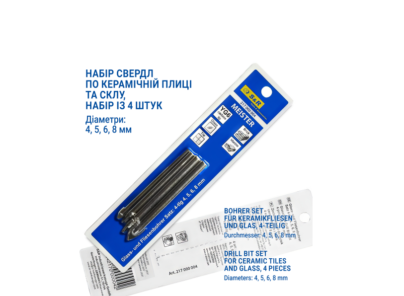 Запитання Набiр свердел по склу та керамiцi, Meister 4 шт, S&R (217000004)