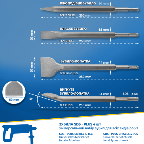 Запитання Набір зубил Meister sds-plus (4 шт). у тубусі S&R (114504250)