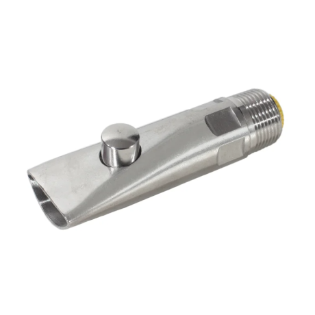 Поїлка ніпельна OPTIFLO 10055-B призначена для биків та кнурів. Виготовлена з міцної нержавіючої сталі, довжина - 105 мм, має різьбу ¾" для встановлення в трубу відповідного діаметра. Кріпиться під кутом 30–45° до горизонталі, що забезпечує комфортний доступ до води без втрат. Штовхальний механізм подачі води реагує на дотик п’ятачка, тому тварина п'є тільки тоді, коли хоче. Переваги — економія води, довговічність, просте очищення.Переваги та гарантія