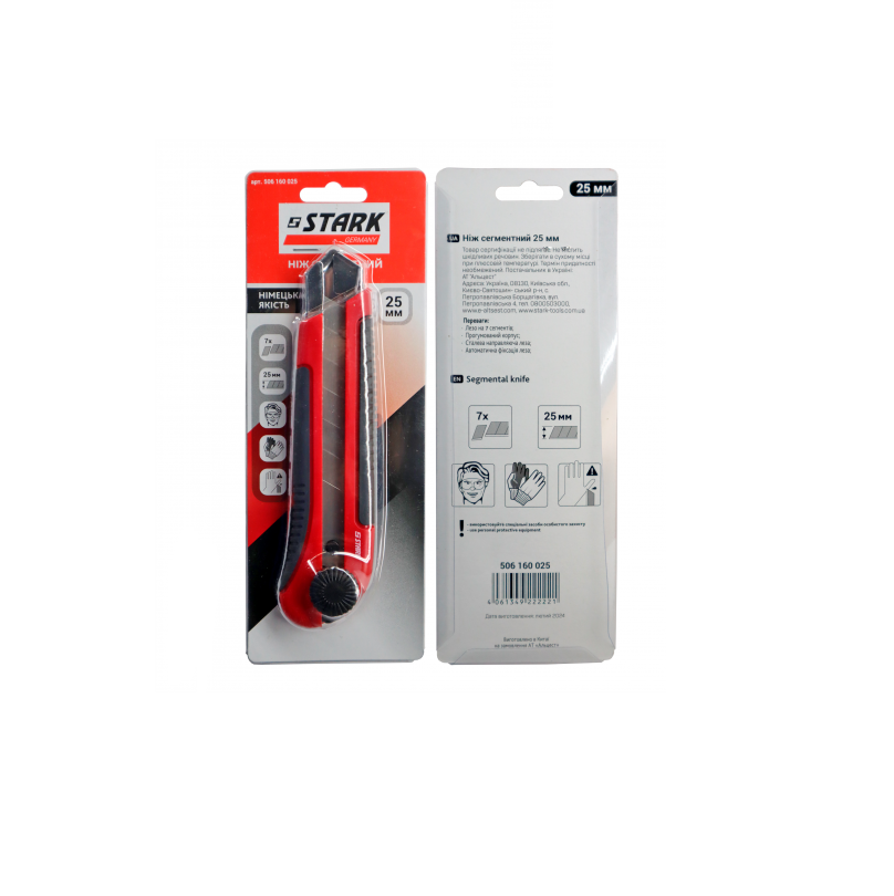 Характеристики Ніж сегментний 25 мм, з металевою направляючою STARK (506160025)