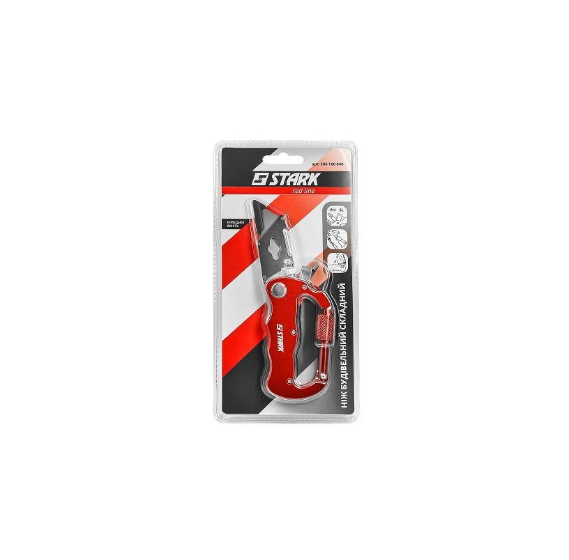Ніж складаний трапецієподібний Stark - інструмент для різання м'яких гумових покриттів, паперу, картону і т. ын. Використовується при виконанні будівельних, ремонтних робіт. До переваг даної моделі відносяться: Наявність штифта для швидкого відкриття великим пальцем. Це дозволяє швидко змінювати леза. Корпус складаний, є фіксація. Вбудовані в корпус ножа хрестова і шліцева викрутки розширюють сферу використання даної моделі. Металевий корпус - сприяє тривалому терміну експлуатації. Наявність карабіна для пристібання інструменту до ременя, сумки. Купити ніж складаний трапецієподібний Stark рекомендується для професійного і любительського використання.Переваги та гарантія