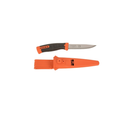 Ніж універсальний BAHCO 2446 - підходить для широкого застосування. Оптимальний для використання у турпоходах. Особливості універсального ножа Бахко 2446: • Лезо виконане із міцної нержавіючої сталі. • Рукоятка ергономічної форми, двокомпонентна, що робить інструмент зручним у використанні. • Чохол для леза має фіксатор. Виготовлений із міцного пластику. Є гачок для кріплення ножа на поясі. • Довжина леза – 100 мм. • Загальна довжина ножа – 220 мм. • Вага - 120 г.Переваги та гарантія