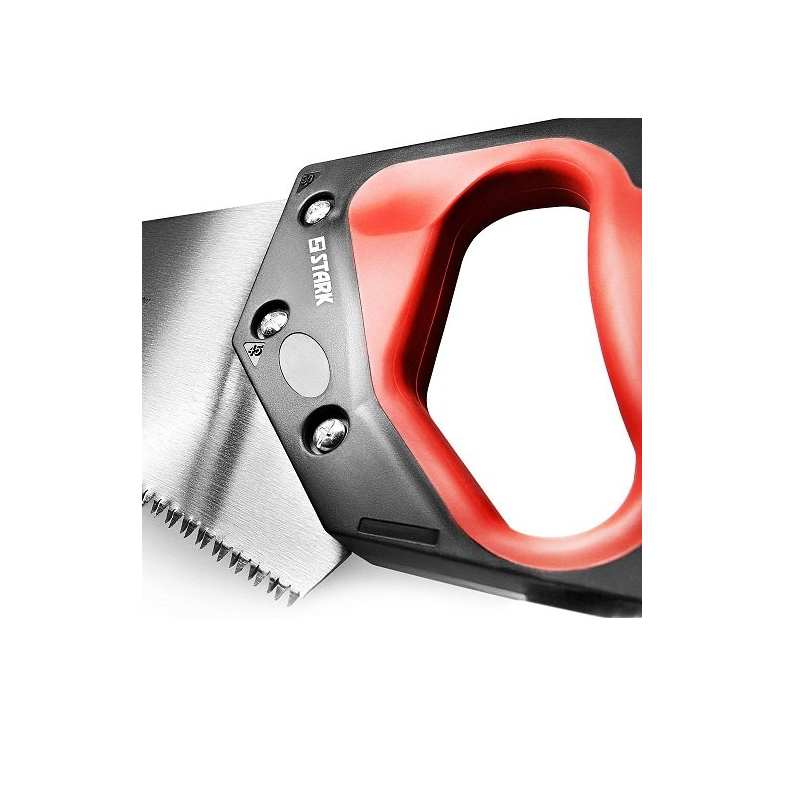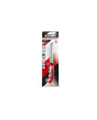 Stark 350 мм - ножівка для роботи з деревом, легко відпиляє гілки з дерев, розпиляє дошку або будь-яку іншу дерев'яну заготовку. Полотно з розведеними 7 зубами / дюйм для якісного пиляння без тертя об стінки розпилювальної канавки. Полотно виготовлене з висококарбоновой стали 65 HCS товщиною 0,9 мм, що забезпечує міцність і стійкість під час роботи, а також має довгий термін служби. Зуби при виготовленні пройшли термічну загартування і потрійну заточку для швидкого пиляння без зазубрин. Полотно завдовжки 350 мм поєднує в собі гнучкість і в той же час стійкість зубів до різного типу дерев'яного матеріалу. Рукоятка з ергономічної накладкою зручно лягати в руці і забезпечує противоскользящий ефект під час роботи. Ножівка по дереву Stark 350 мм - якісний інструмент створений для універсального різу колод, дощок та інших дерев'яних виробів.Переваги та гарантія