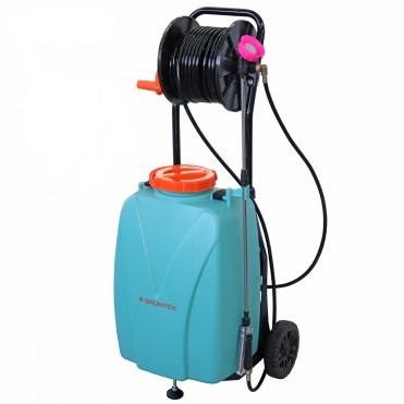 Перед використанням повністю заряджайте акумулятор. Використовуйте форсунки відповідно до завдання: точкове обприскування, розпилення або дощування. Котушка полегшує змотування шланга, а візок робить пересування ділянкою зручним.