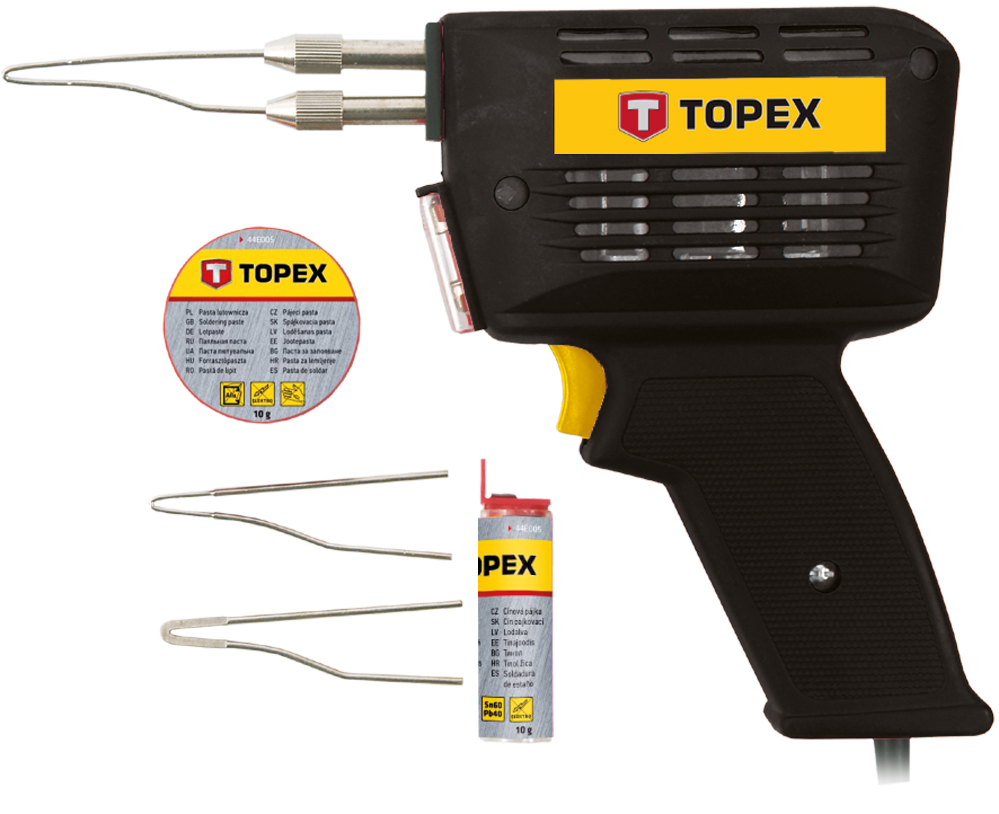 Паяльник електричний TOPEX 150Вт 400°C нікельована мідь паяльна паста олов'яний припій кейс 44E005