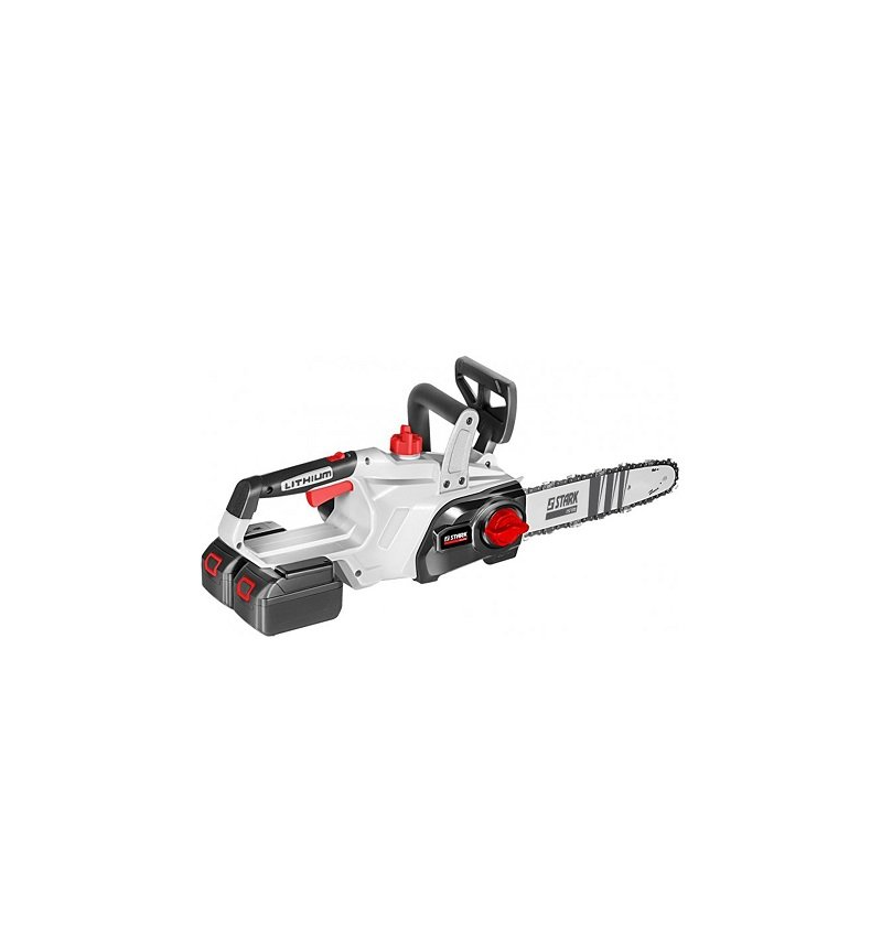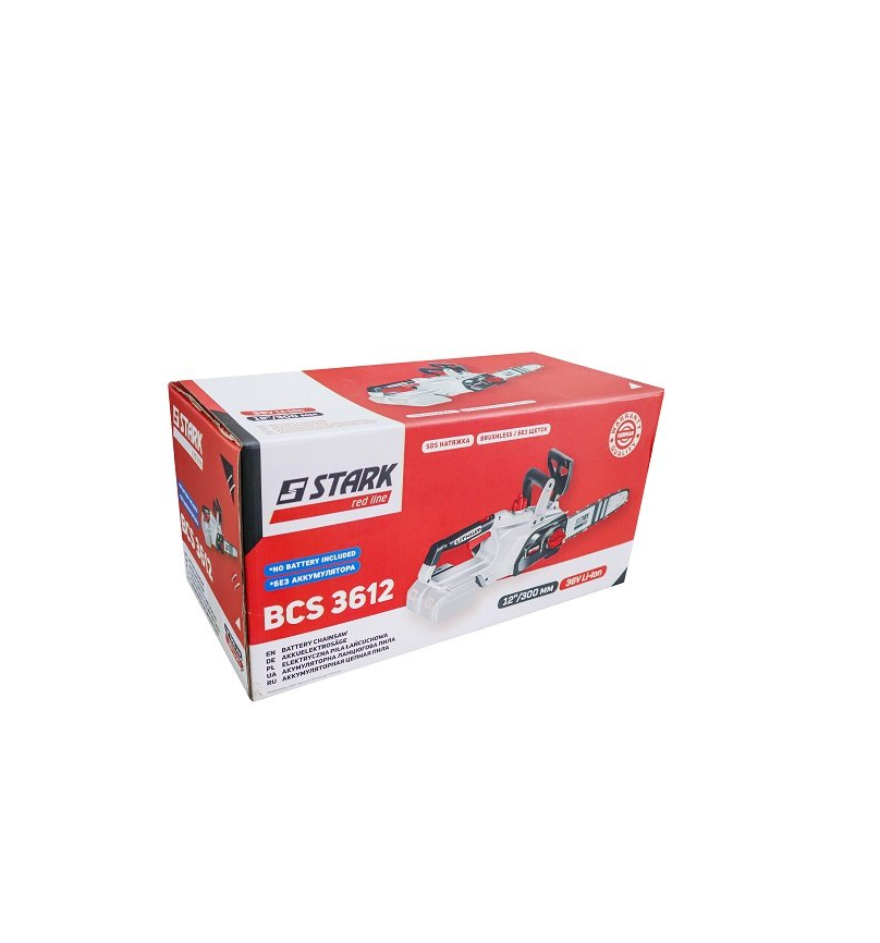 Акумуляторна пила ланцюгова Stark BCS-3612 36В (без акумулятора) - призначена для пиляння дерев, гілок, дерев'яних плит, дощок, балок тощо. Працює від акумуляторів 2х18 В, що забезпечує мобільність пристрою та зручність у використанні. Довжина шини – 12 дюймів або 300 мм. Переваги ланцюгової пилки акумуляторної Stark BCS-3612: Оснащена потужним безщітковим двигуном з поперечним розташуванням, він відрізняється надійністю, високою потужністю та низьким енергоспоживанням. На моделі встановлений міцний редуктор із ведучою зірочкою. Висока продуктивність роботи інструменту забезпечується гарною швидкістю руху ланцюга: 6,7 м/с. Натяг ланцюга здійснюється без використання інструментів - SDS (ланцюг поставляється в комплекті із шиною). Підтримка плавного запуску сприяє стабільному, точному розпилюванню без ривків. Безпека використання забезпечується наявністю: інерційного гальма ланцюга, захисту від випадкового включення, щитка захисту лівої руки з моментальним спрацьовуванням гальма. Змащування ланцюга маслом автоматичне, що суттєво спрощує експлуатацію інструменту. Наявність індикатора рівня оливи дозволяє оператору своєчасно поповнювати резервуар для мастила ланцюга. Невелика маса пили - 2,6 кг дає можливість працювати з нею протягом тривалого часу, не відчуваючи втоми. Купити акумуляторну ланцюгову пилку Stark BCS-3612 рекомендується для аматорського чи професійного використання.Переваги та гарантія