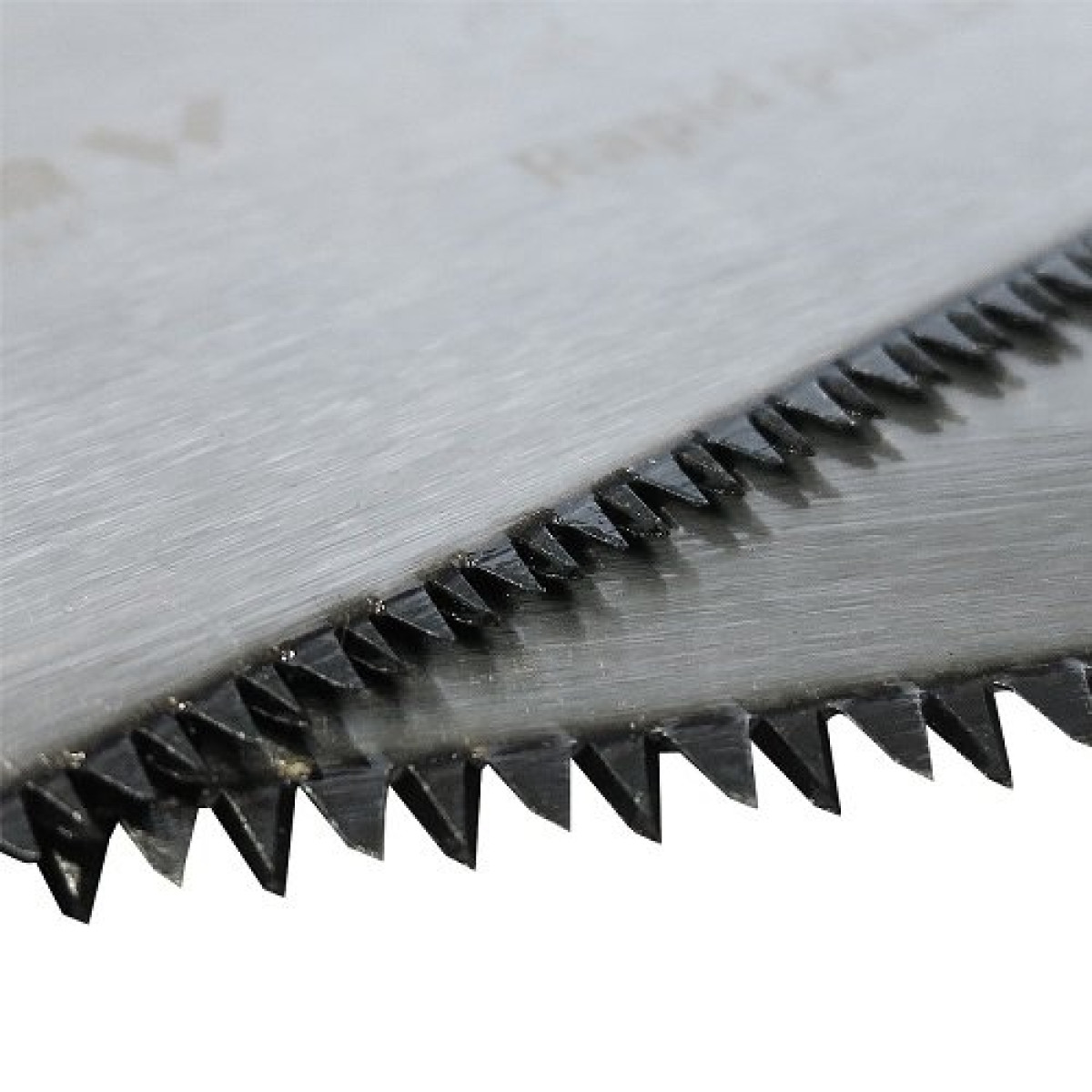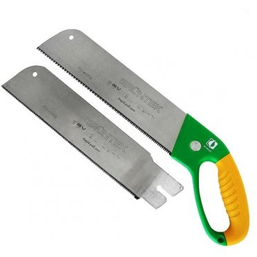 Gruntek Piranha 350 мм - садові пила для спилювання гілок, невеликих дерев та іншої рослинності в саду. Пила обладнана змінними лезами, які виготовлені з карбонової загартованої сталі. Одне з лез з 8 зубів на дюйм - призначене для універсальної роботи з суками, дошками, які не великими стовбурами тощо. Друге з 13 зубами на дюйм - призначене для більш чіткого і чистого зрізу гілок. Обидва леза мають широку основу і потрійну заточку зубів з термічною обробкою. Зручна вигнута рукоятка D-подібної форми для зручного захоплення, а завдяки рейках на ручці рука не ковзає під час роботи. Зміна лез відбувається швидко за допомогою натискання 1-й кнопки на рукоятці. Пилу Piranha 350 мм зручно зберігати, завдяки отвору на лезі, яке можна повісити в гаражі або майстерні. Пила Gruntek Piranha 350 мм - універсальний інструмент для роботи в саду, на дачних ділянках і в сільських господарствах.Переваги та гарантія