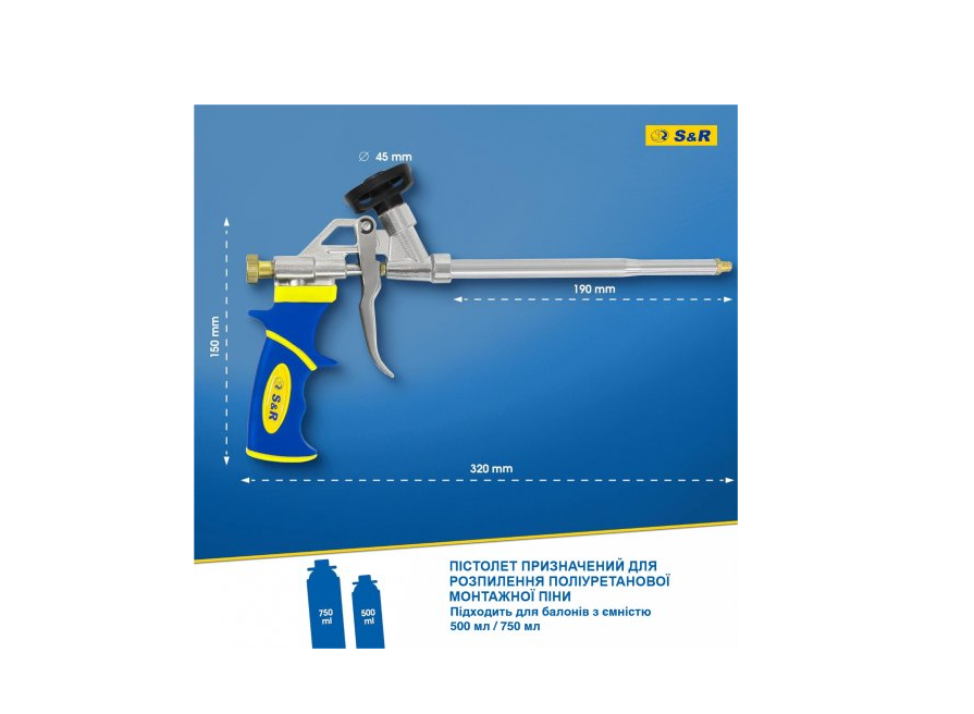 Запитання Пістолет для монтажної піни 320 мм, з тефлоновим покриттям S&R (279180100)